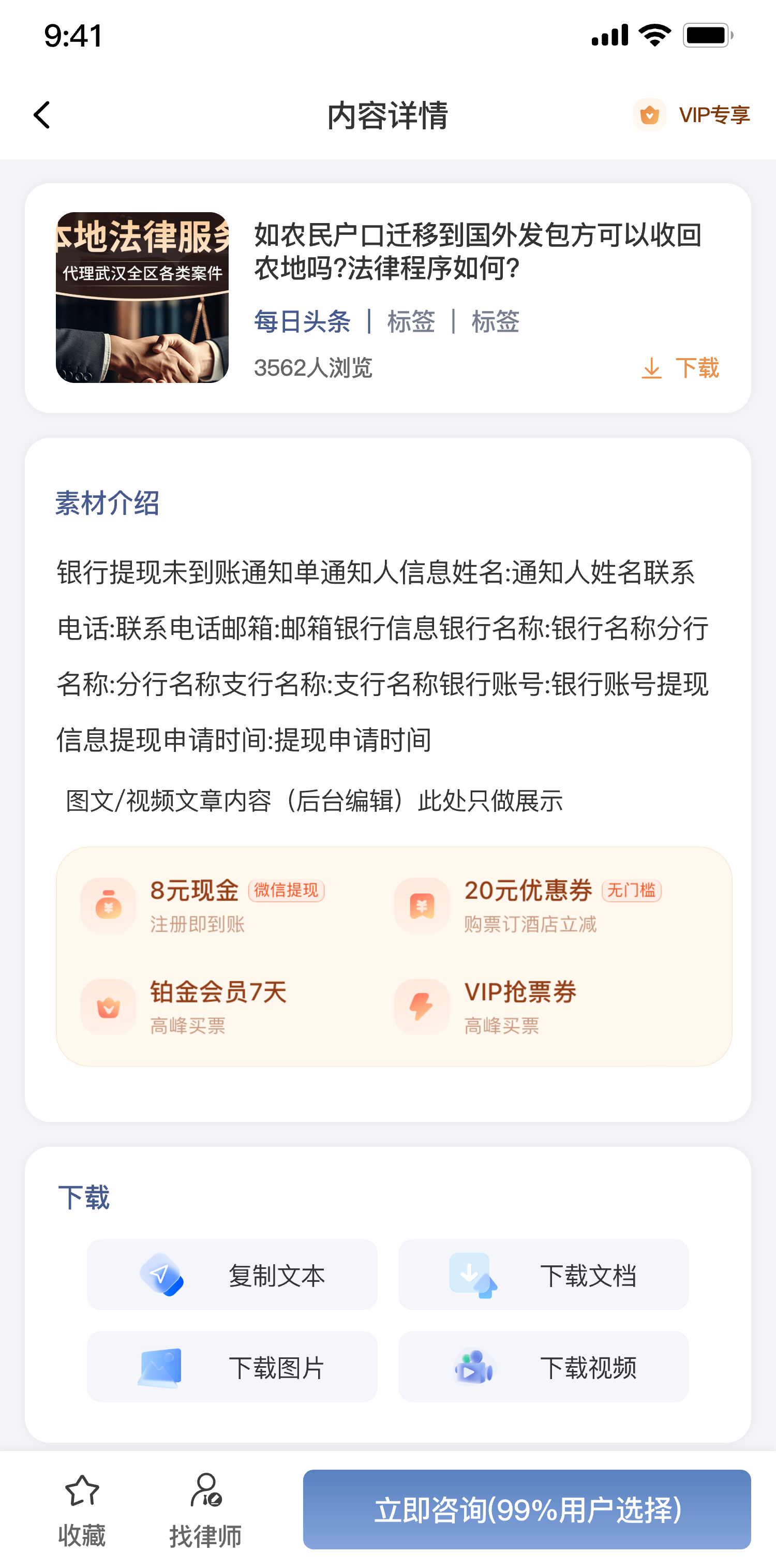 律师费计算(文章描述功能),APP下载(跳转APP下载页链接),退出登陆